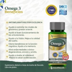 Omega 3 IFOS 60 Caps – InnovaNaturals es un suplemento de aceite de pescado de alta calidad, formulado para aportar una alta concentración de ácidos grasos esenciales: