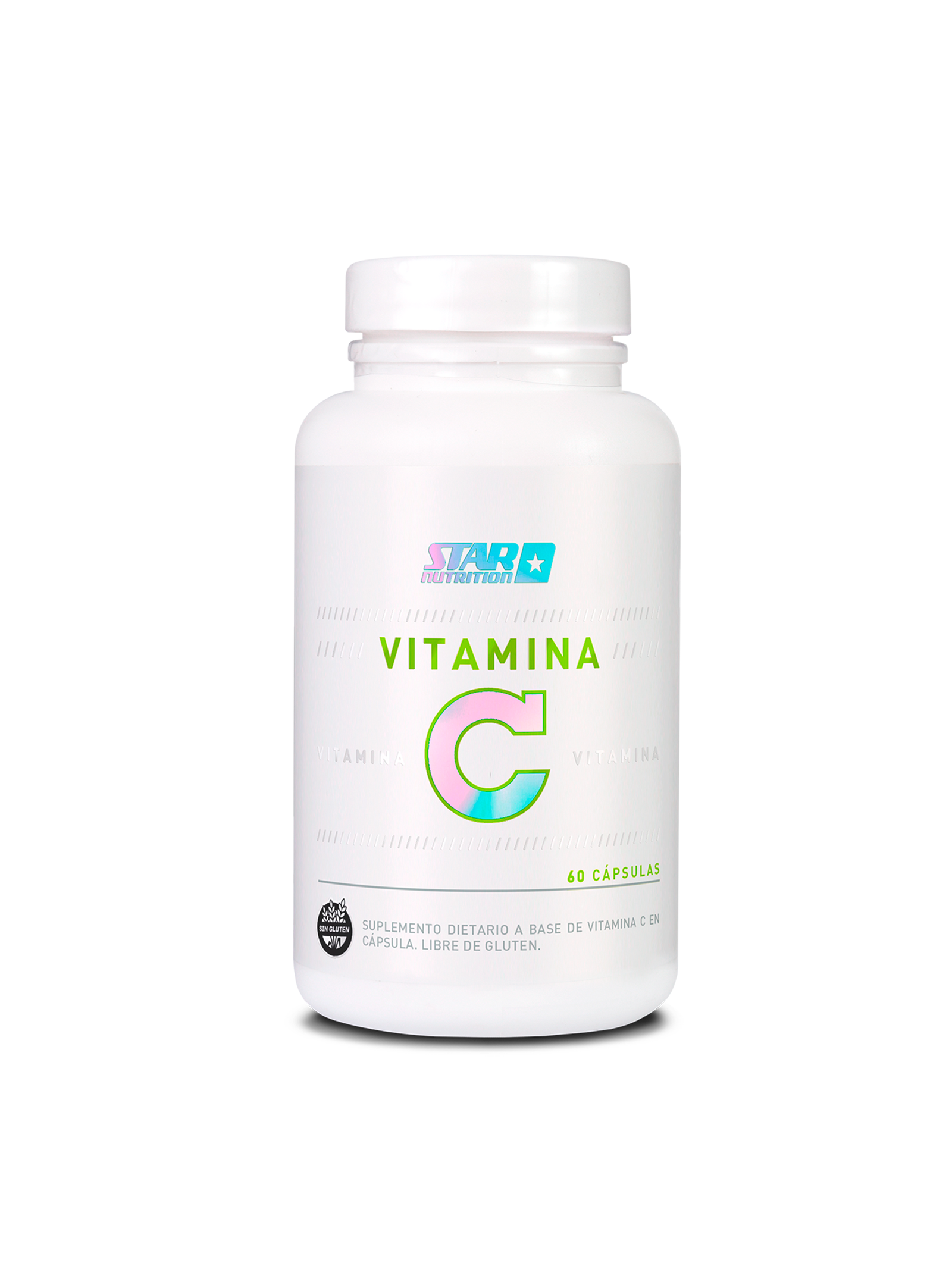 Vitamina C de Star Nutrition es un poderoso antioxidante en formato cápsula, formulado con ácido ascórbico puro, libre de gluten y sin T.A.C.C., presentado en un frasco con 60 cápsulas (30 servicios)